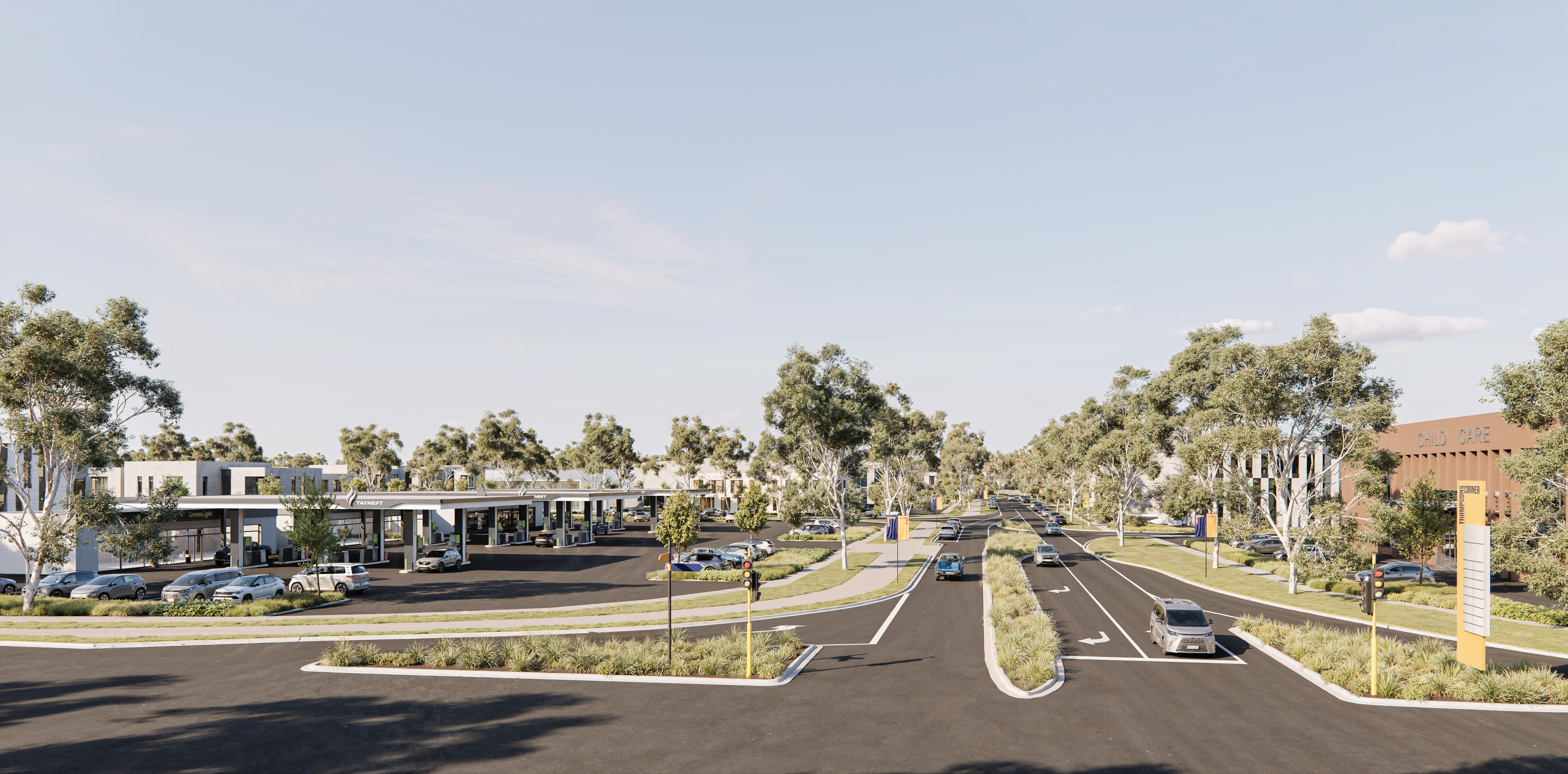 At Cranbourne East, Thompsons Corner occupies a prominent position at the western gateway to the Croskell Employment Precinct, with dual arterial frontage to Thompsons Road and Narre Warren-Cranbourne Road, carrying combined traffic volumes of up to 60,000 vehicles per day.
